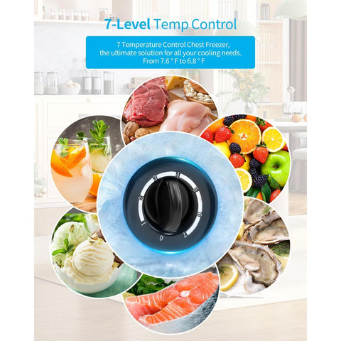 TABU 3.5 Cubic Feet Chest Freezer, Energy Saving Chest Deep Freezer with 7 Level Adjustable Thermostat, Top Opening Compact Freezer with Removable Storage Basket (Black)