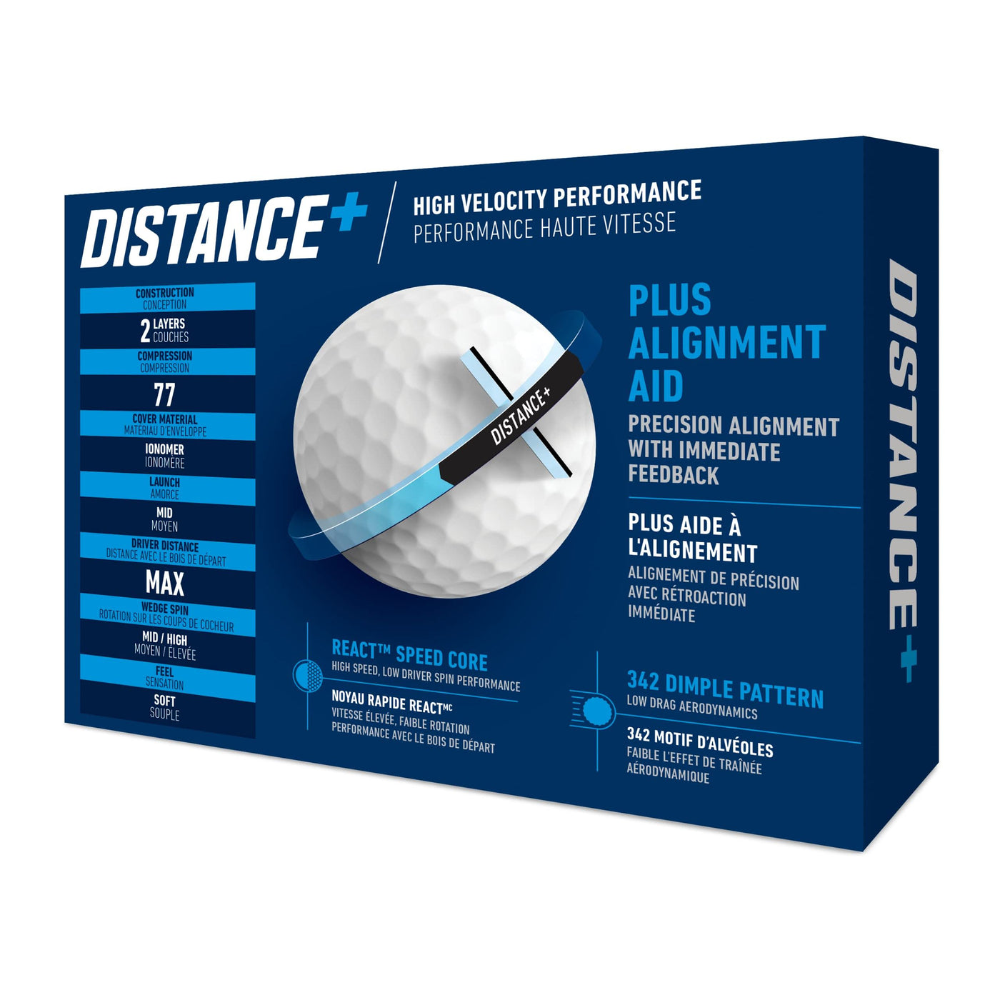 - Designed for Speed - Featuring a REACT Speed Core, TaylorMade Distance plus golf balls are designed for explosive speed, delivering high-velocity performance for distance on the golf course