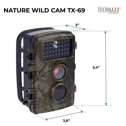 Details: Security camera battery operated for indoor and outdoor use features: ideal for recording and observing the wildlife and for monitoring houses full had video resolution 1080p2. 4” TFT LCD display select functions: video, photo, video & photopia sensor (15M) & IR range (20M) for night recordings triggering time 0. 6 seconds built-in microphone & speaker micros card** up to 32GB (**Not included)camera protection class IP56 (dust proof & heavy splash water proof)technical specifications: video resolution: 1920x1080/ 15Fps, 1280x720/ 30Fps, 720x480/ 30Fps, 640x480/ 30Fps, 320x240/ 30fpsphoto resolution: 12MP (4000x3000 interpolated), 8MP (3264x2448 interpolated), 5MP (2592x1944), 3MP (2048x1536), 1MP (1280x960)video length: 3 sec. –10 min. Programmable file format: JPEG/Aviles: f=3. 62mm, F/No2. 2, fob=70°, auto IR filter trigger interval: 5 sec. –60 min. Programmable timer & time lapse function (3 sec. –24 Hrs. ) programmable power supply: 8x AA batteries* (included); external 6V power supply**, at least 1. 5Astandby time: 12 months working temperature: –7°c up to +40°cpackage contents: nature wild Cam tx-69mini USB cabala cable mounting belt & Supportable screws & 3x dowels8x AA batteries user manual weight and dimensions: dimensions device: (large) 9. 7 x (W) 7. 6 x (H) 13. 7cm
