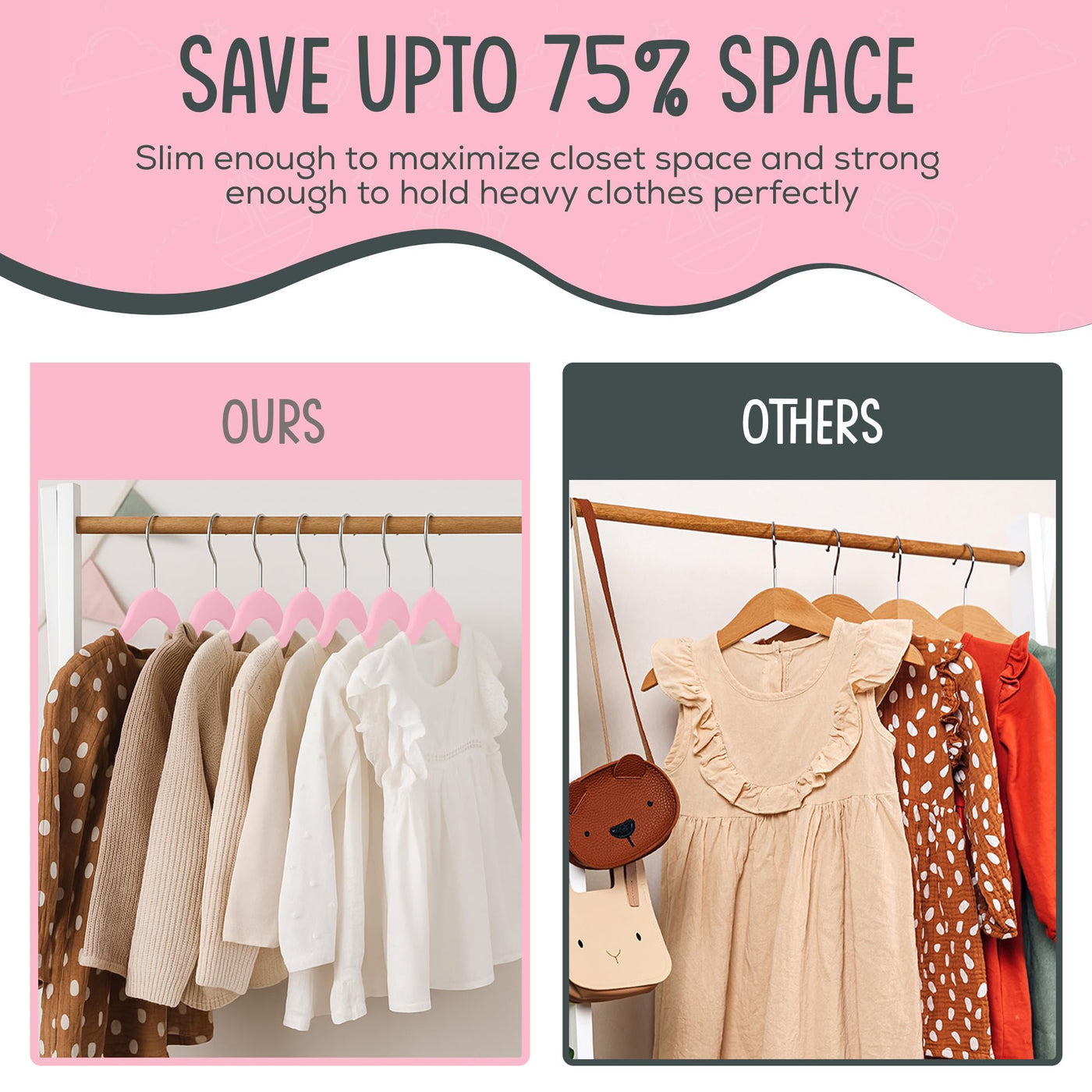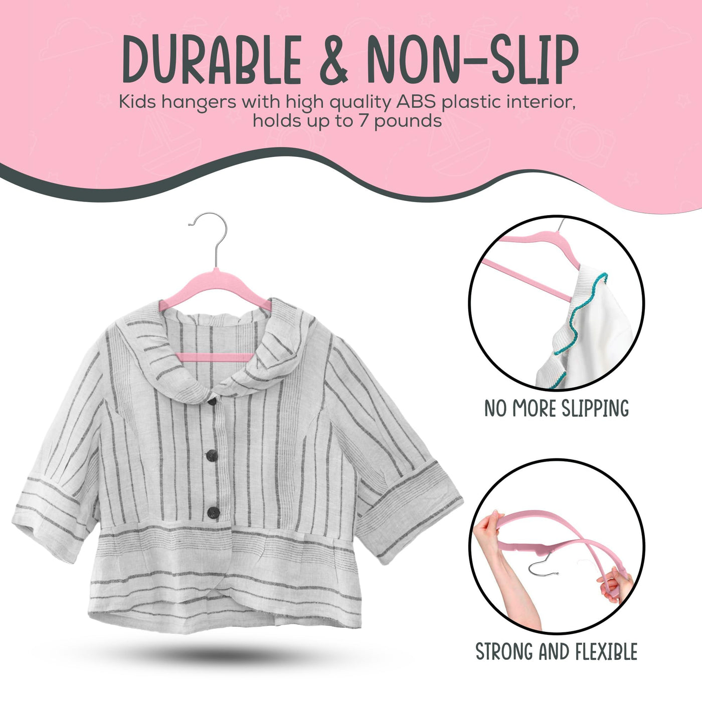 TechZoo 50 Premium Kids Velvet Hangers - 14" Non-Slip Clothes Hangers for Kids & Preteens - Ultra Slim, Space-Saving, Strong & Durable Hangers with 360° Swivel Hook - Pink Sale
