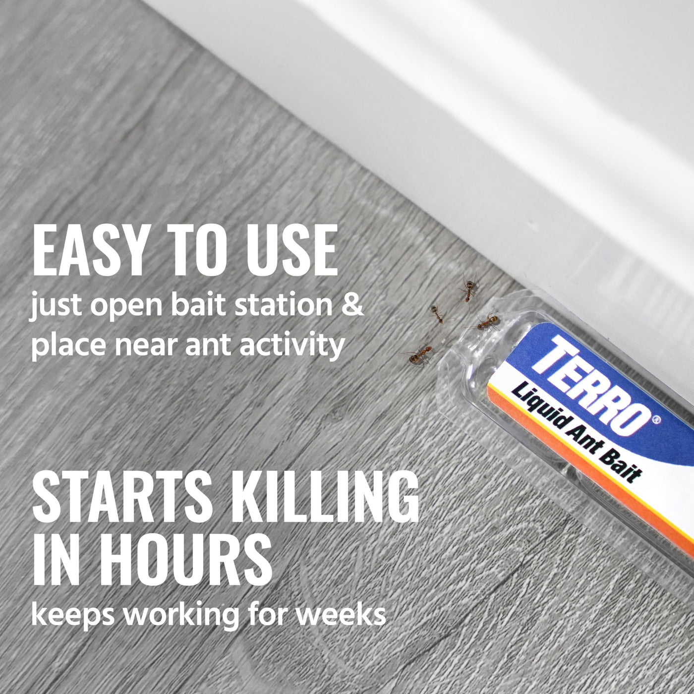 - KILLS THE ANTS YOU DON'T SEE: TERRO ant bait is designed to share with the entire colony, eliminating both visible ants and those hidden, using liquid ant baits