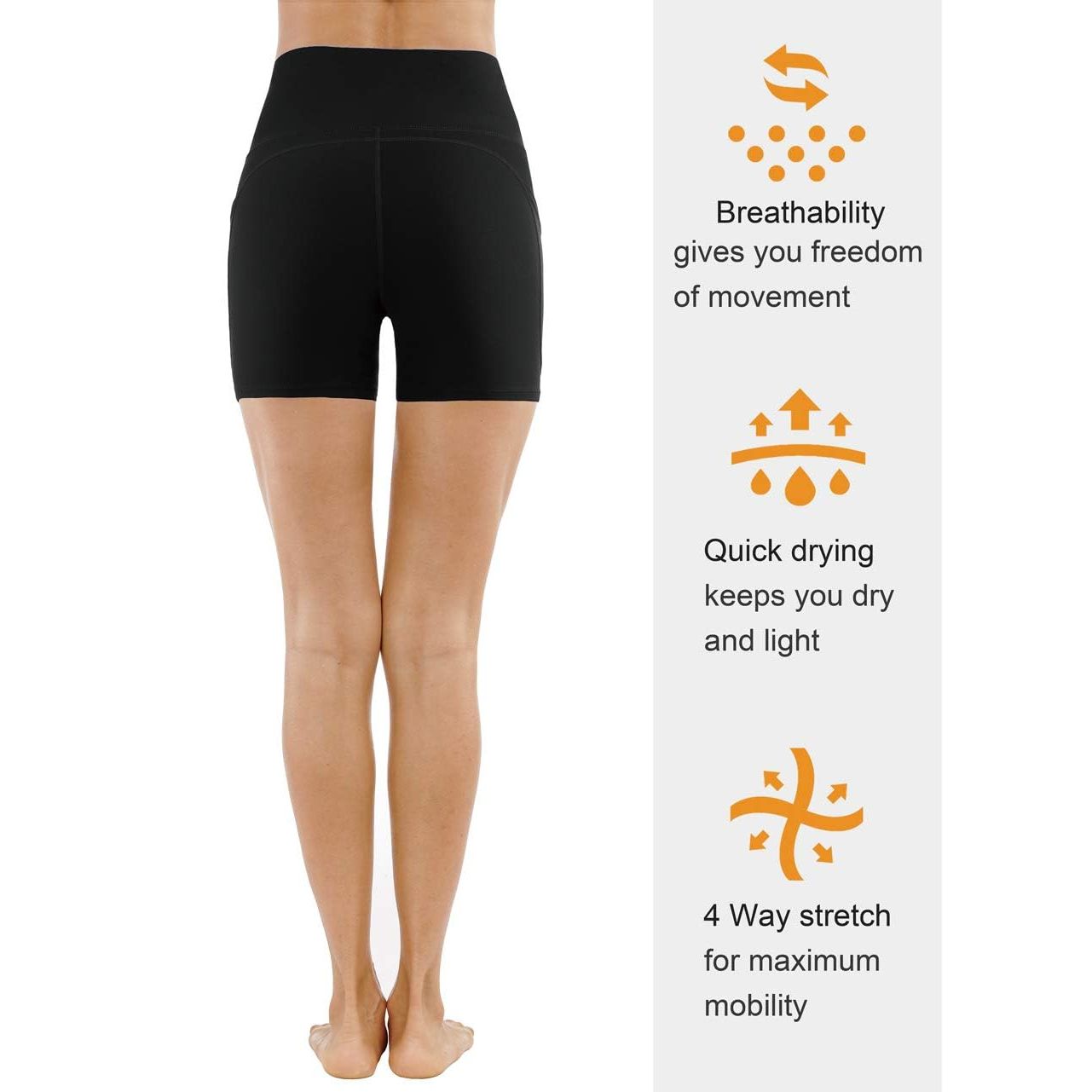 - [Keep Perfect Shape] - High-waisted style with tummy control design. Wide waistband contours body curves and streamlines shape help to promote yoga shorts both compression and support.