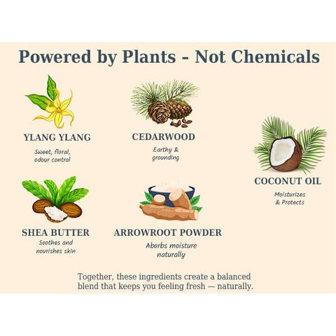- NATURAL DEODORANT FOR MEN and WOMEN handcrafted using a powerful blend of organic, chemical-free ingredients that neutralise odour without blocking sweat glands.