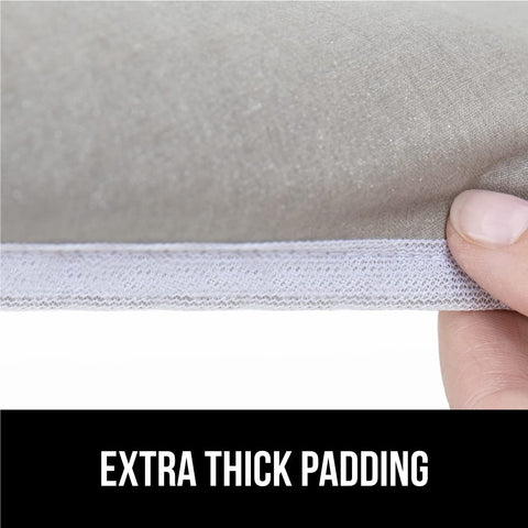 - EXTRA THICK PADDING: cover is extra thick and provides a durable barrier between clothing and the ironing board, so that the mesh from the board will not transfer to your clothing