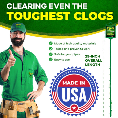 The original Zip-It Hair Clog Remover 25-inch Overall Length Drain Snake Cleaner (3-Pack), Unclog Your Sink, Shower, & Tub Drain In Seconds – Non-toxic, Made in the USA