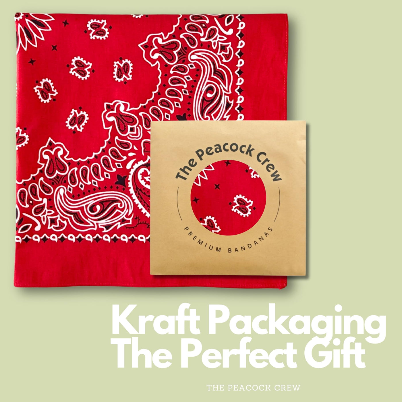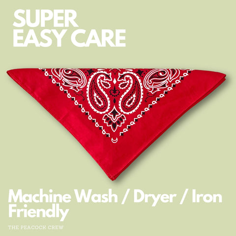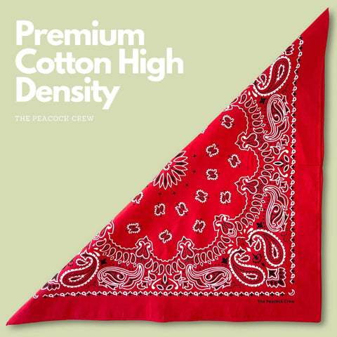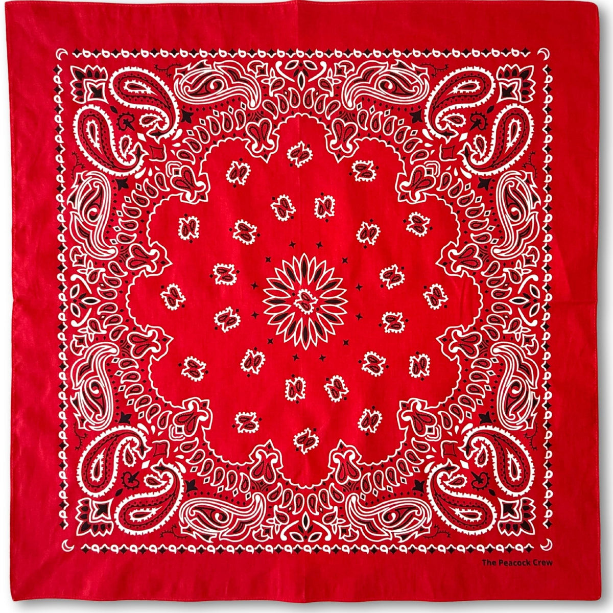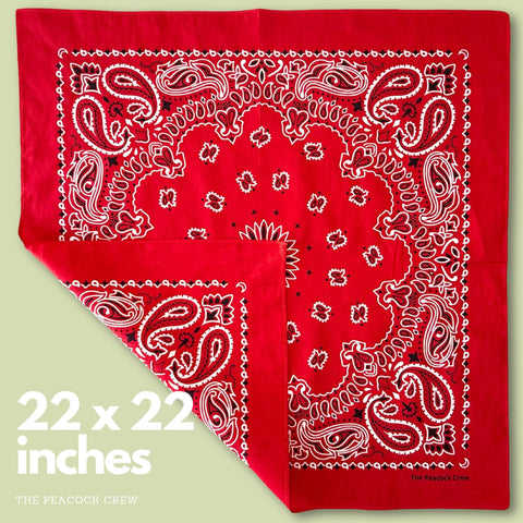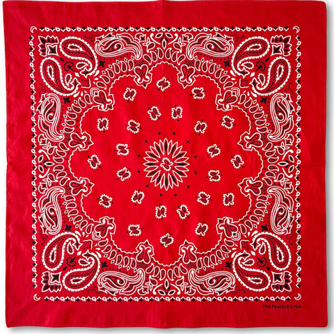The Peacock Crew Red Bandana for Men and Women in Premium Soft Cotton – Classic Western Cowboy Paisley Scarf, Versatile Headband or Neck Accessory, Gift Kraft Packaging