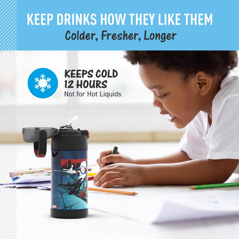 - Stays cold: THERMOS vacuum insulation technology keeps drinks cold for up to 12 hours. Our stainless steel water bottles are built so their drinks are as cool on the inside as they look on the outside. Not for hot liquids