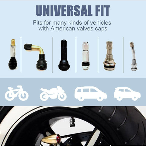 - WIDE COMPATIBILITY: Our tire air caps are compatible with all American standard schrader valve stem. Include cars, SUVs, trucks, RVs, bicycles, bikes, and other motor vehicles.
