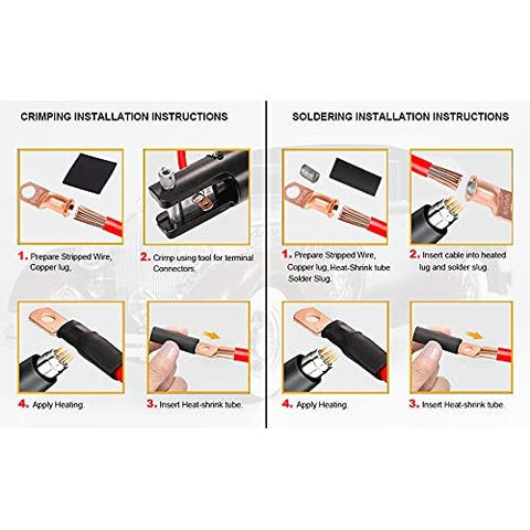 - 【Reliable and Easy to Use:】These battery lugs with heavy duty construction,improves high temperature durability and have a close end pad design, keeping electrical components, batteries and cables safe and free from moisture, and also prevents solder from leaking during installation; high standard flared opening for easy wire insertion.The wire shrink wraps are all pre-cut into the most common sizes which improve your work efficiency.