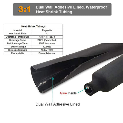 - 【Quality Material:】 The TKDMR bare copper battery cable ends are made from 100% annealed copper with special treatment surface for corrosion protection, providing a high degree of conductivity for maximum current flow. Can be Crimped or Soldered.The 3:1 shrink tube is well made of high quality material(UL & CSA certified for up to 600V,257℉), thick and durable than 2:1 shrink tube.