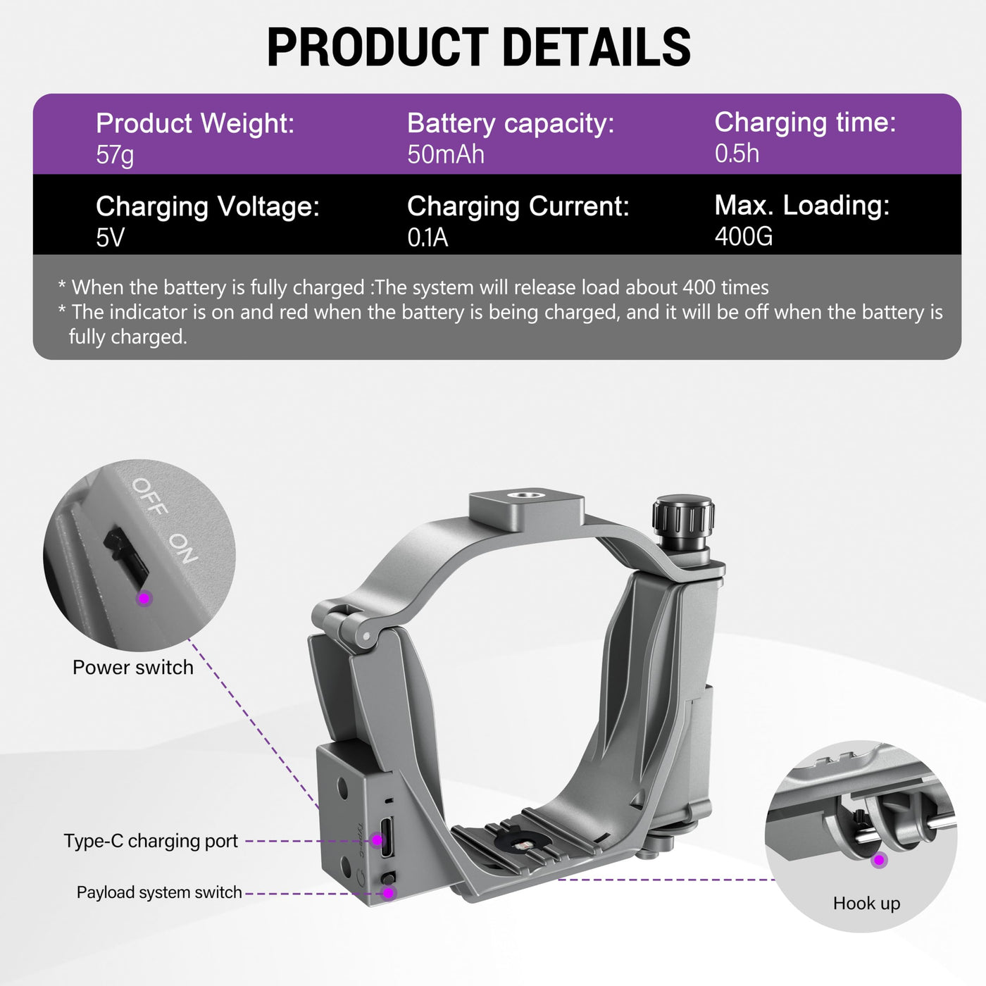 - 【What you get】1x Airdrop, 1x Charging cable, 3x circular ring, 1x release cable, 2x silicone pad, 1x instruction manual(Note:drone not included).