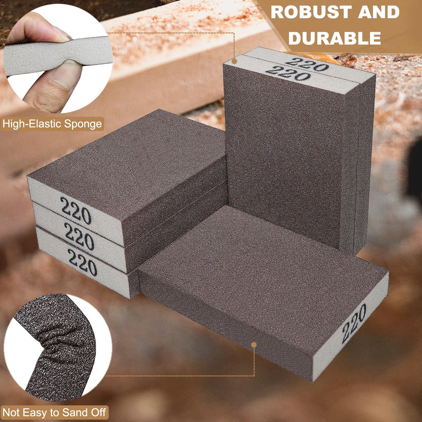 - 6 Pack 220 Grit Superfine Sanding Sponge, Washable and Reusable Sanding Blocks