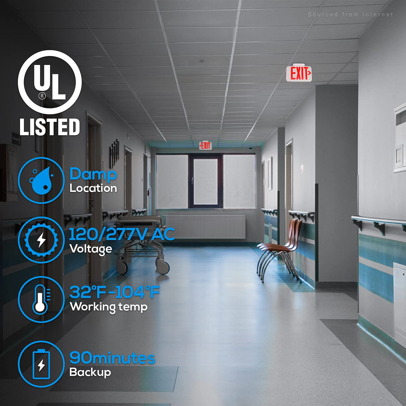 TORCHSTAR LED Exit Sign, Emergency Exit Light with Battery Backup, Double Face, UL 924, AC 120/277V, Damp Location, Hardwired Red Letter Exit Lights for Business Indoor, Pack of 2 Sale