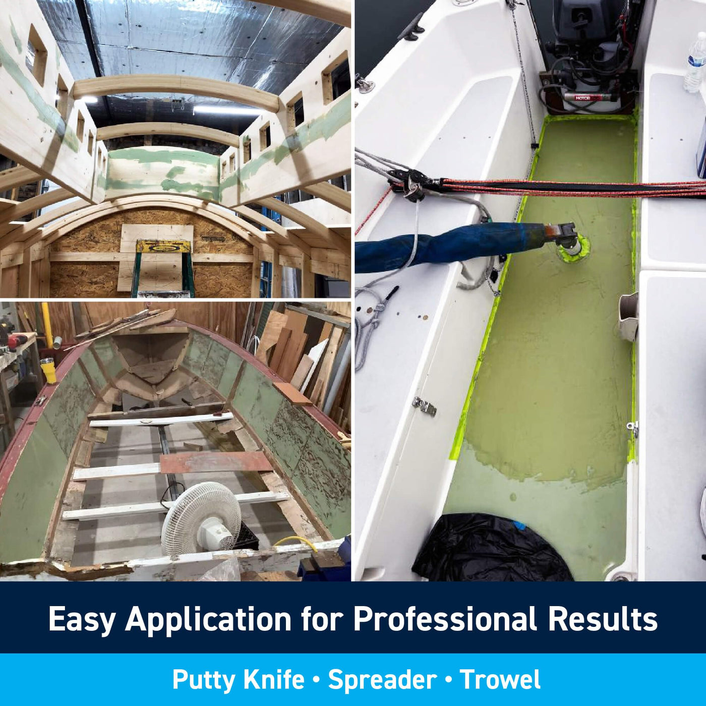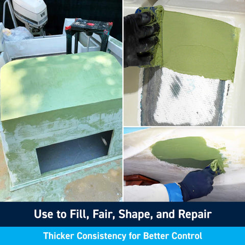 - HIGH-STRENGTH, LIGHTWEIGHT TWO-PART EPOXY FILLER smooths out the rough spots and fills the voids; ideal for filling and fairing dents, holes and gouges on your boat, canoe or other watercraft. Marine-grade putty is also great for home, rv and auto repair.