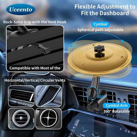 Uceento 2Pcs Car Cymbal Air Vent - Easy Clip-On Mini Cymbal for Car Dashboard, Compact & Durable Musical Car Accessory for Drivers, Fits All Vehicles (Gold) Sale
