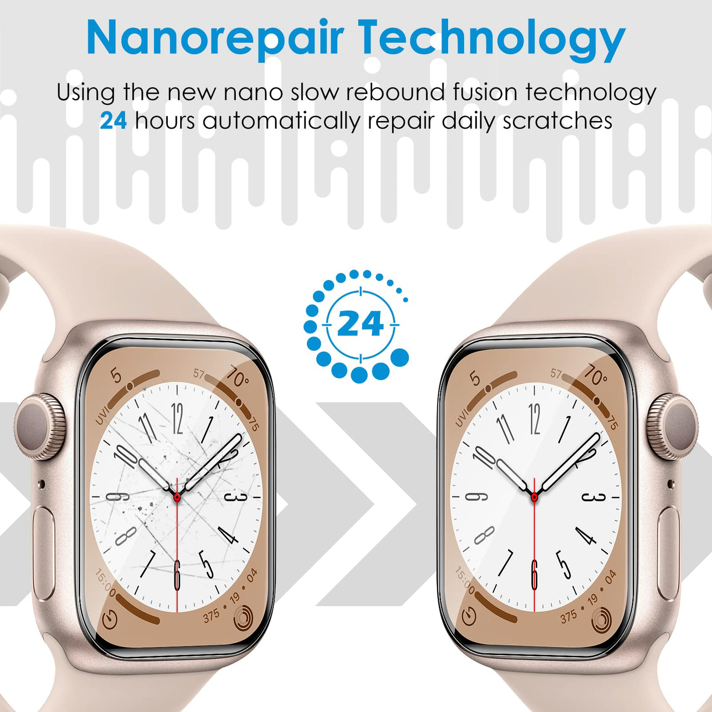 - [Anti-scratch] This screen protector is made of military-grade polyurethane, which can absorb shock, wear and scratch, provide comprehensive protection for your watch.