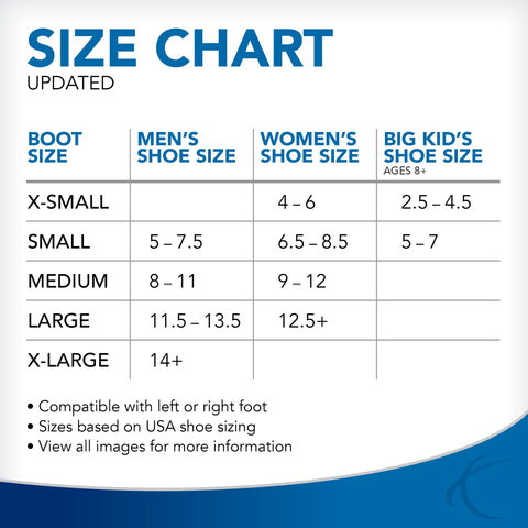 The United Ortho short air cam walking boot provides maximum stability and support following injury or post-operative procedures. The short air cam walking boot can be used for acute ankle sprains, soft tissue injuries, stable lower leg, foot and ankle fractures and post-operative use. Plastic molded uprights with steel reinforcement provides increased durability. Shock-absorbing insole reduces impact of heel strike when walking. Rocker sole helps promote a natural gait to allow continuation of daily activities. Recommended up to 300 pounds. United Ortho has provided medical professionals and consumers with affordable, high-quality products for more than 40 years. We design, manufacture, and distribute a broad range of bracing solutions, and commitment to customer satisfaction is ingrained in our culture. United Ortho guarantees all products to be free from defects in materials and workmanship for a period of six months from date of purchase. For warranty claims or questions please contact 1-800-227-8748.