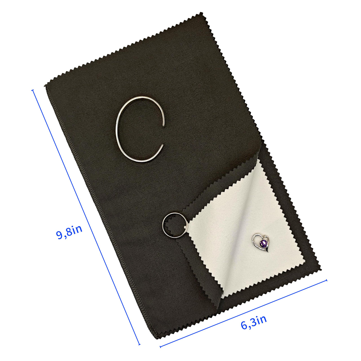 - PRO SIZE: The size of this large jewelry cleaning cloth is designed for easy polishing of silverware, watches, silver musical instruments, antiques, and big pieces of jewelry. It also provides a better handle for small pieces such as silver rings, coins, medals, and more. The size of each Pro Size jewelry cloth opened is 9.8x12 inches.