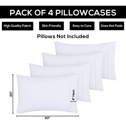 Utopia Bedding Queen Pillow Cases - 4 Pack - Envelope Closure - Soft Brushed Microfiber Fabric - Shrinkage and Fade Resistant Pillow Covers Queen Size 20 X 30 Inches (Queen, White)