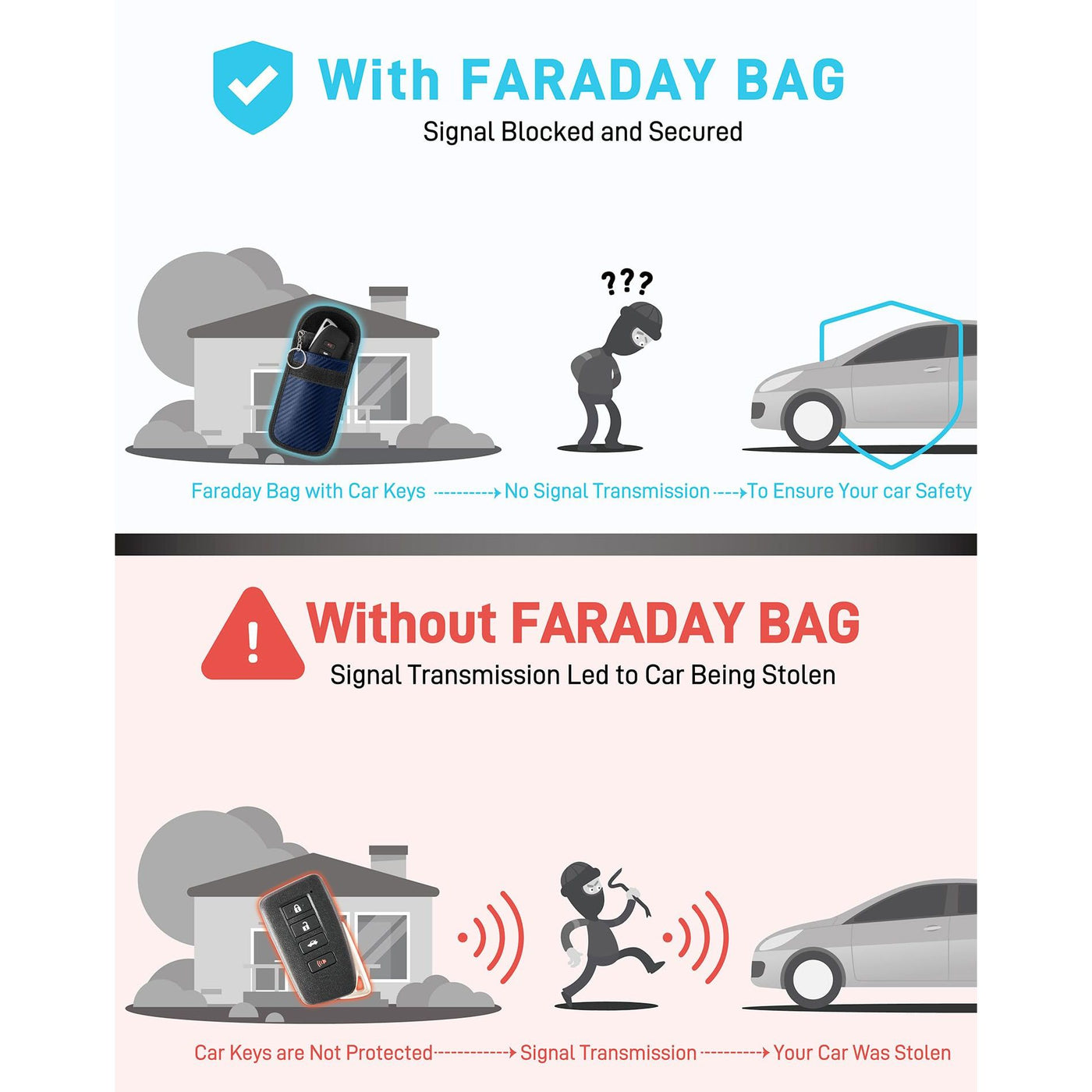 Vammcht Upgraded Faraday Bag for Key Fob (2 Pack), Premium Faraday Key Fob Protector– Car RFID Signal Blocking, Car Security Protection, Anti-Theft Pouch, Anti-Hacking Case Blocker Blue