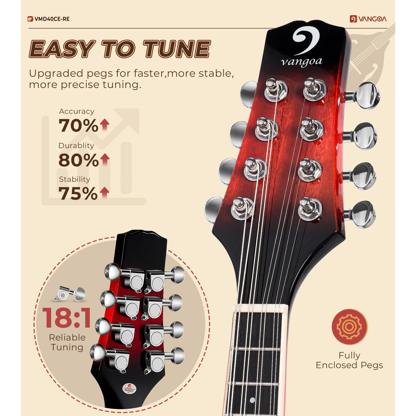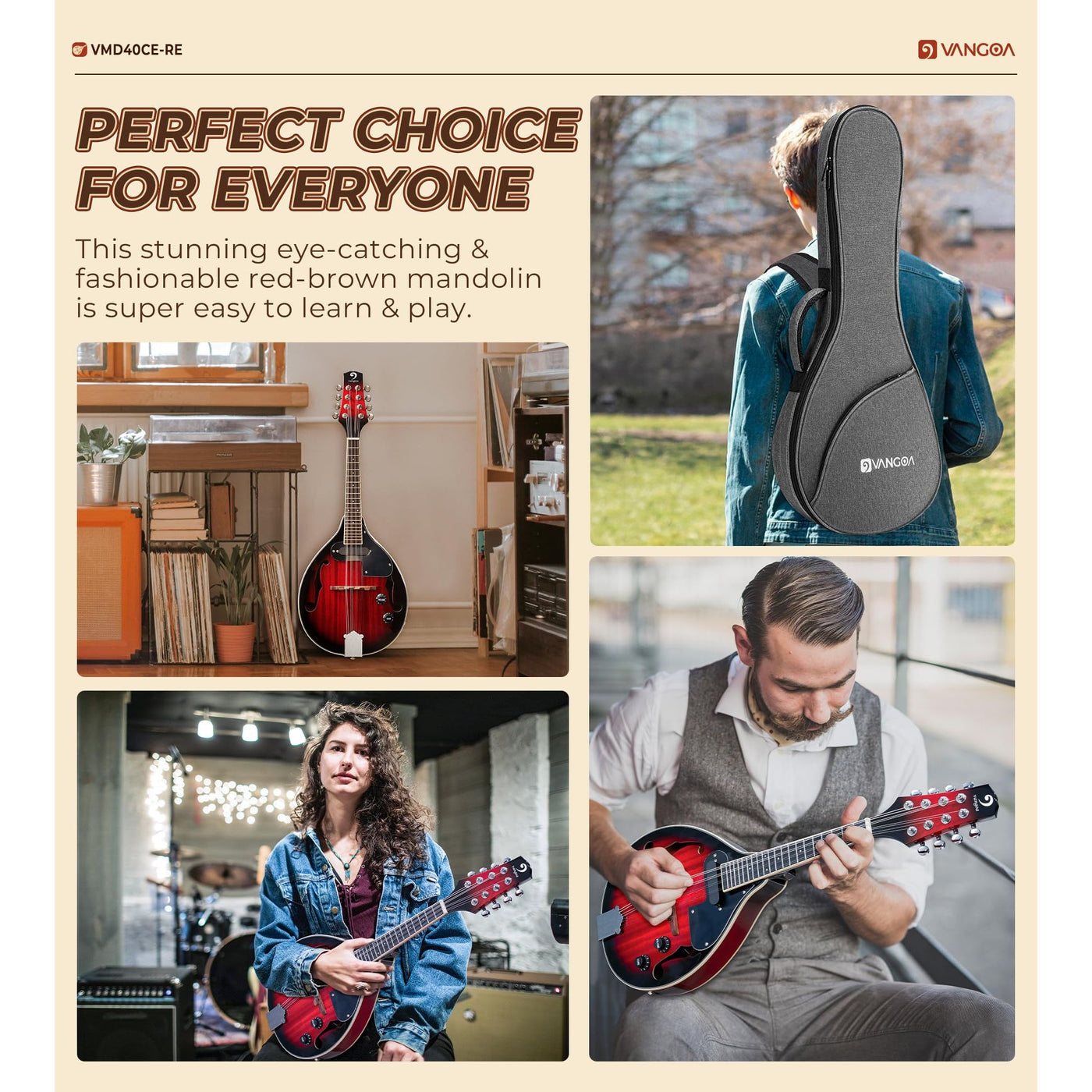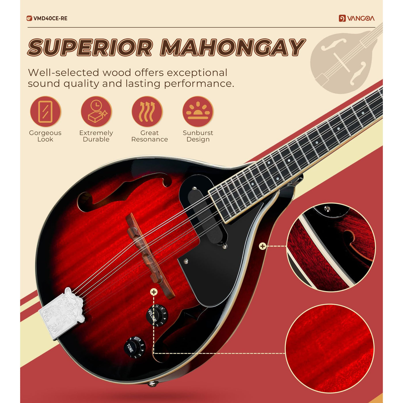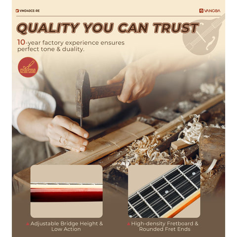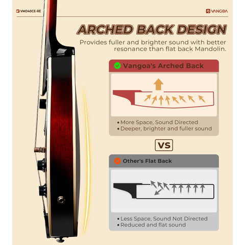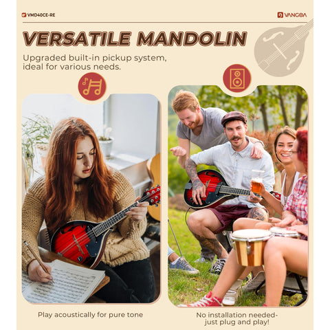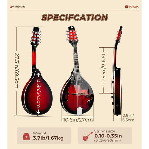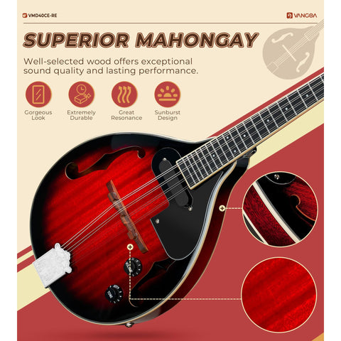Vangoa Mandolin Musical Instrument A Style Acoustic Electric, 8 Strings Mahogany for Beginner Adults Teens, Red Burst Sale