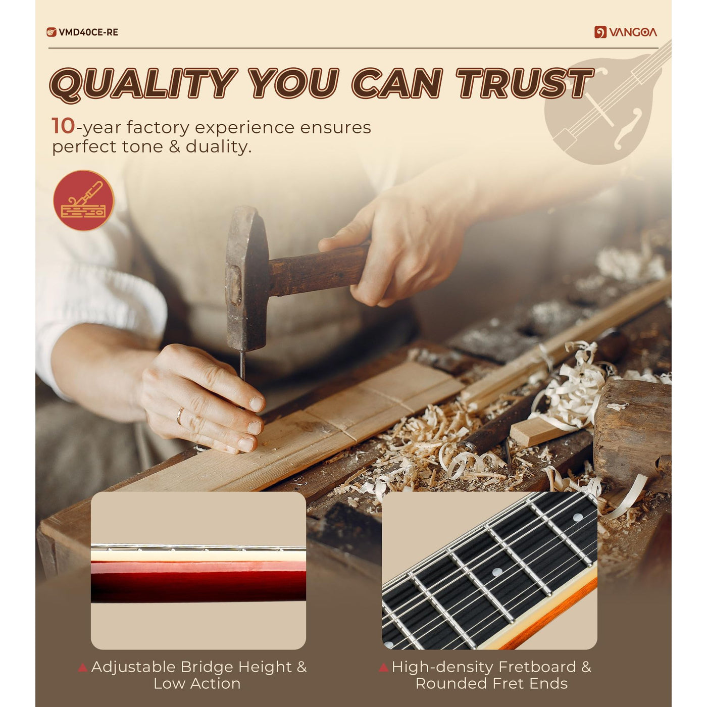 Vangoa Mandolin Musical Instrument A Style Acoustic Electric, 8 Strings Mahogany for Beginner Adults Teens, Red Burst