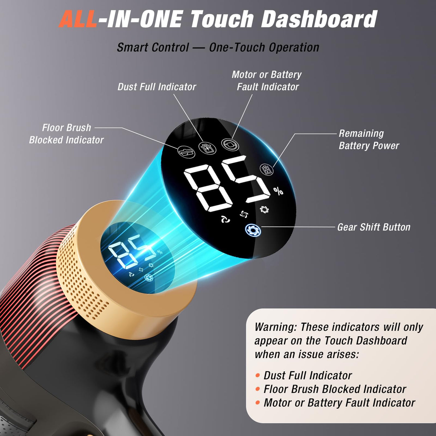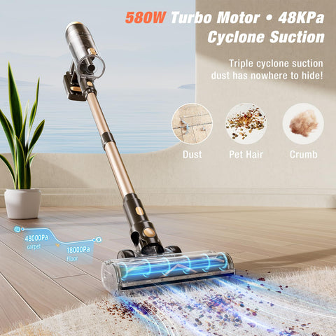 VBUOO Cordless Vacuum Cleaner, 580W 48KPA 70 Mins Vacuum Cleaners for Home, Self-Standing Stick Vacuum with Wall Mount Charge, Touch Screen, Ultra High-Power Brush for Pet Hair/Plush Carpet/All Floor