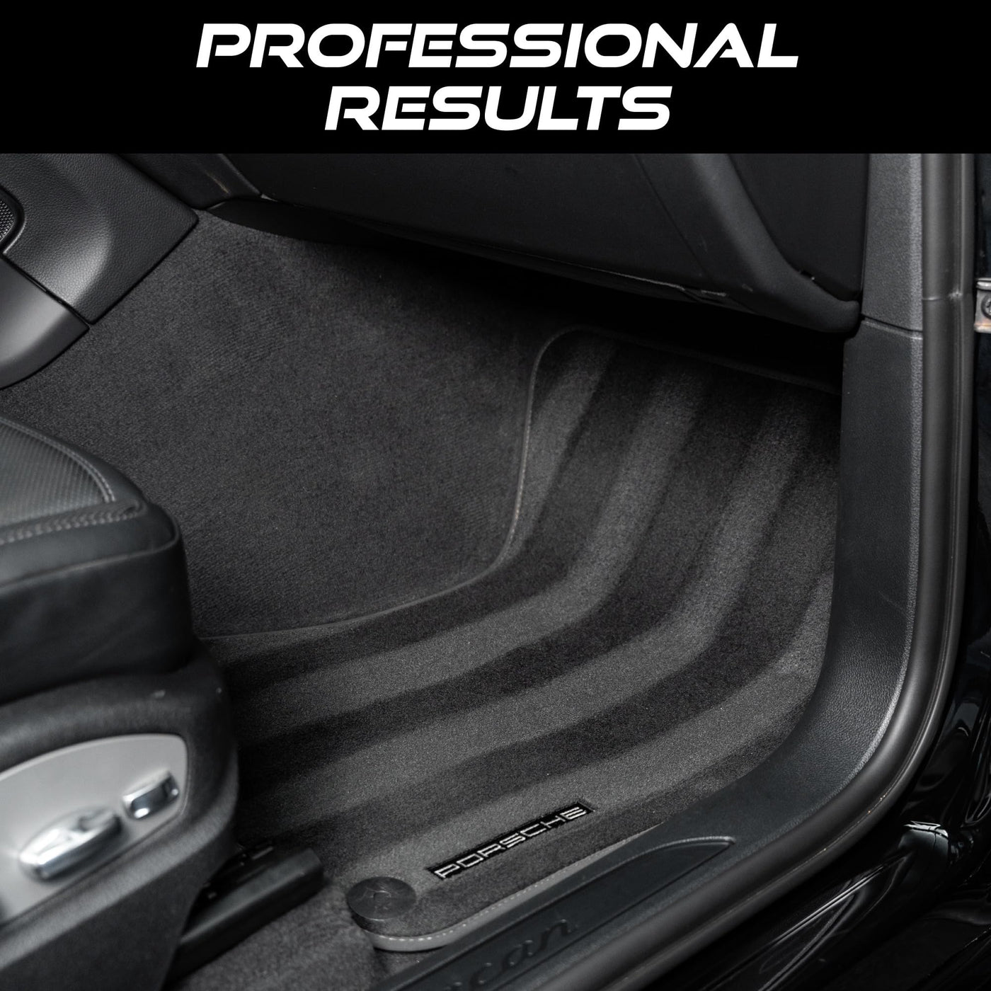 - Use the car interior cleaner brush wet with your favorite carpet cleaner or car cleaning supplies