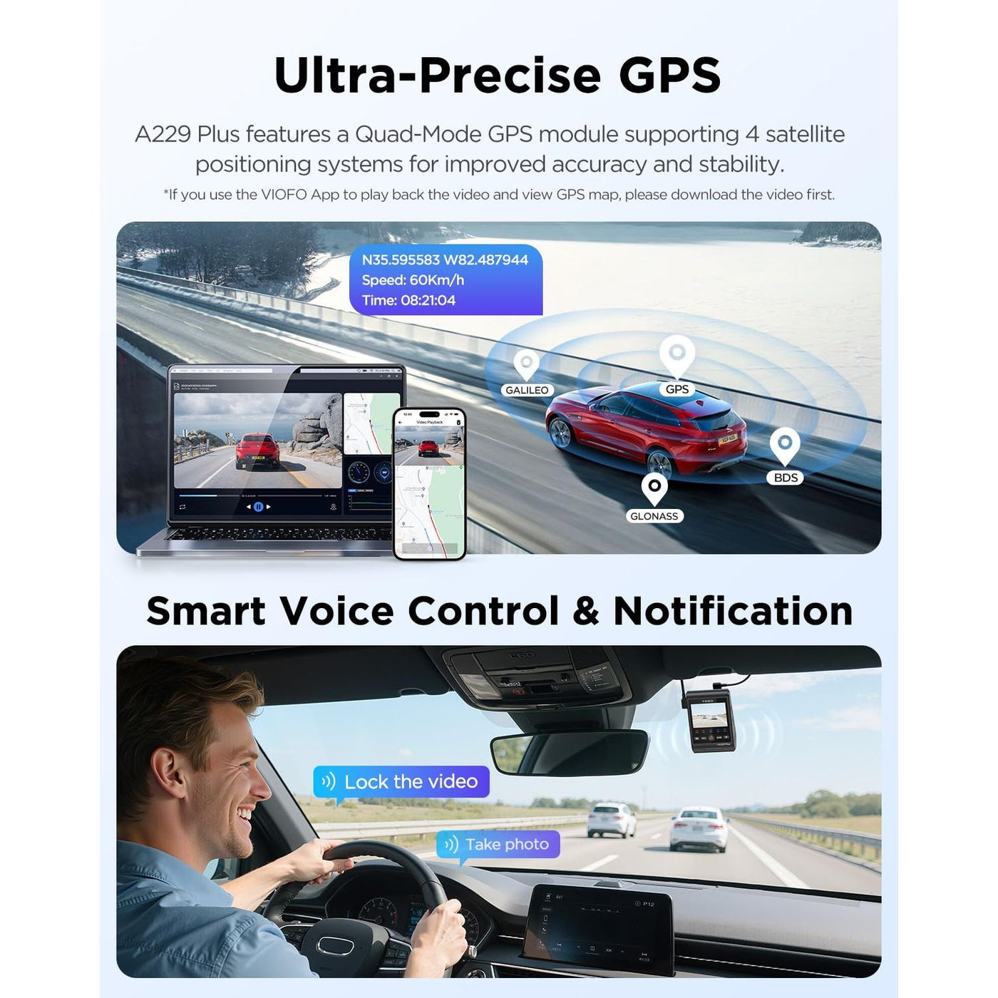 VIOFO A229 Plus Dash Cam Front and Rear, Dual STARVIS 2 Sensors, 2 Channel HDR, 1440P+1440P Voice Control Car Dash Camera, 5GHz Wi-Fi, Support 512GB Max, Voice Control, Ultra-Precise GPS