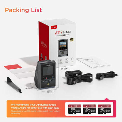 VIOFO Dash Cam A119 Mini 2, STARVIS 2 Sensor, 2K 60fps/HDR 30fps Voice Control Car Dash Camera with 5GHz Wi-Fi GPS, Night Vision 2.0, 24H Parking Mode, Supercapacitor, Support 512GB Max Sale