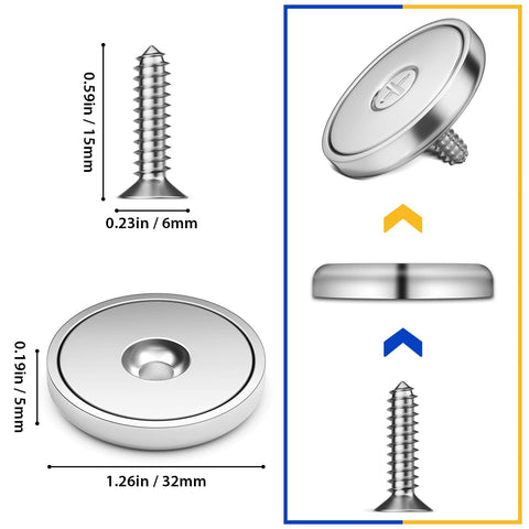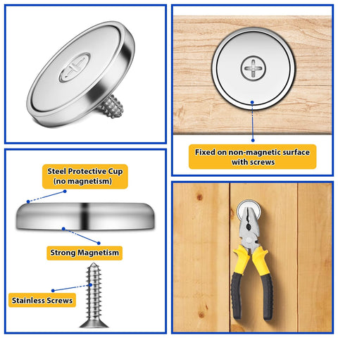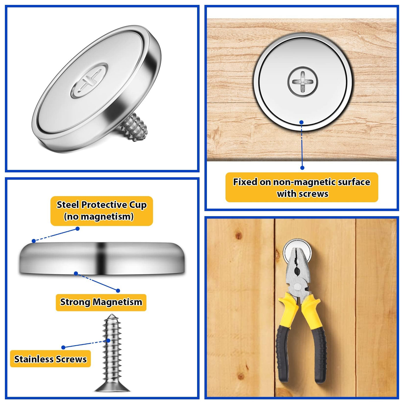 - 【VERY DURABLE】: These magnets will not break in normal use since the magnets are protected inside the steel cups which greatly increases the longevity of the magnets.