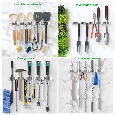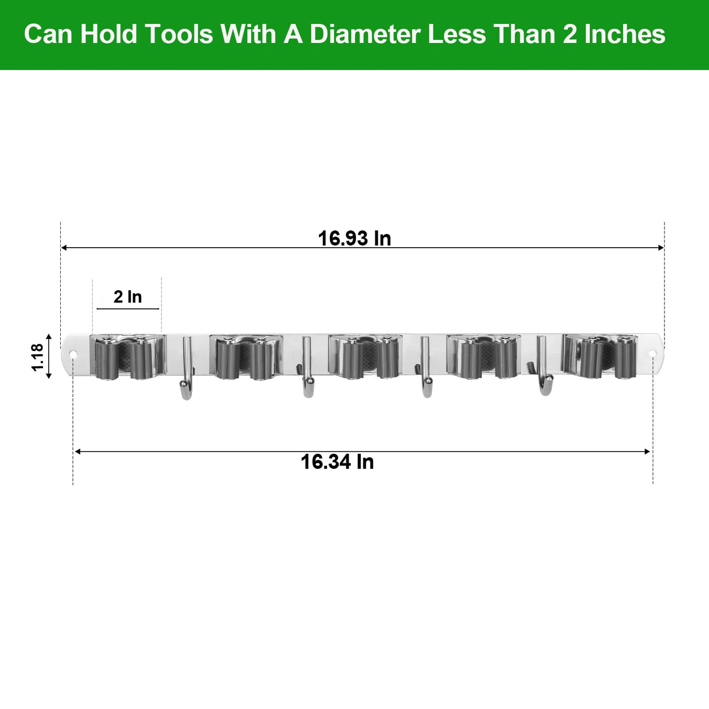 voze 5 Racks and 4 Hooks Mop and Broom Holder Wall Mount, Self Adhesive Heavy Duty Broom Hanger Organizer Storage Tool Racks for Kitchen Garden Laundry Garage