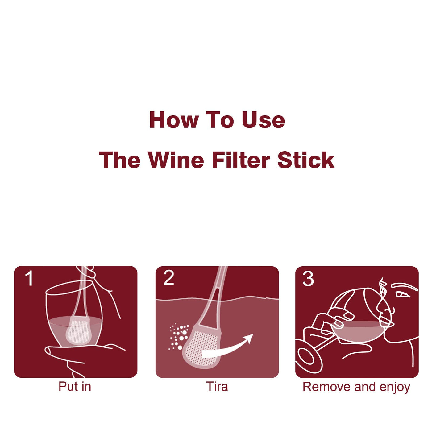 - Wine filter sticks contain filter material that works by filtering histamine and sulfites,without releasing any substance into the wine, thus filtering a glass of wine