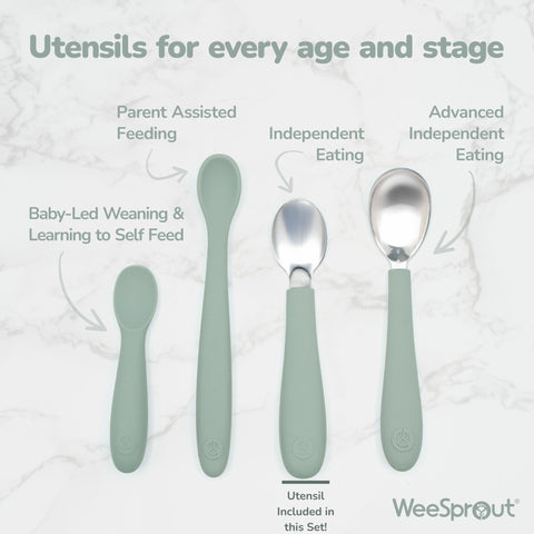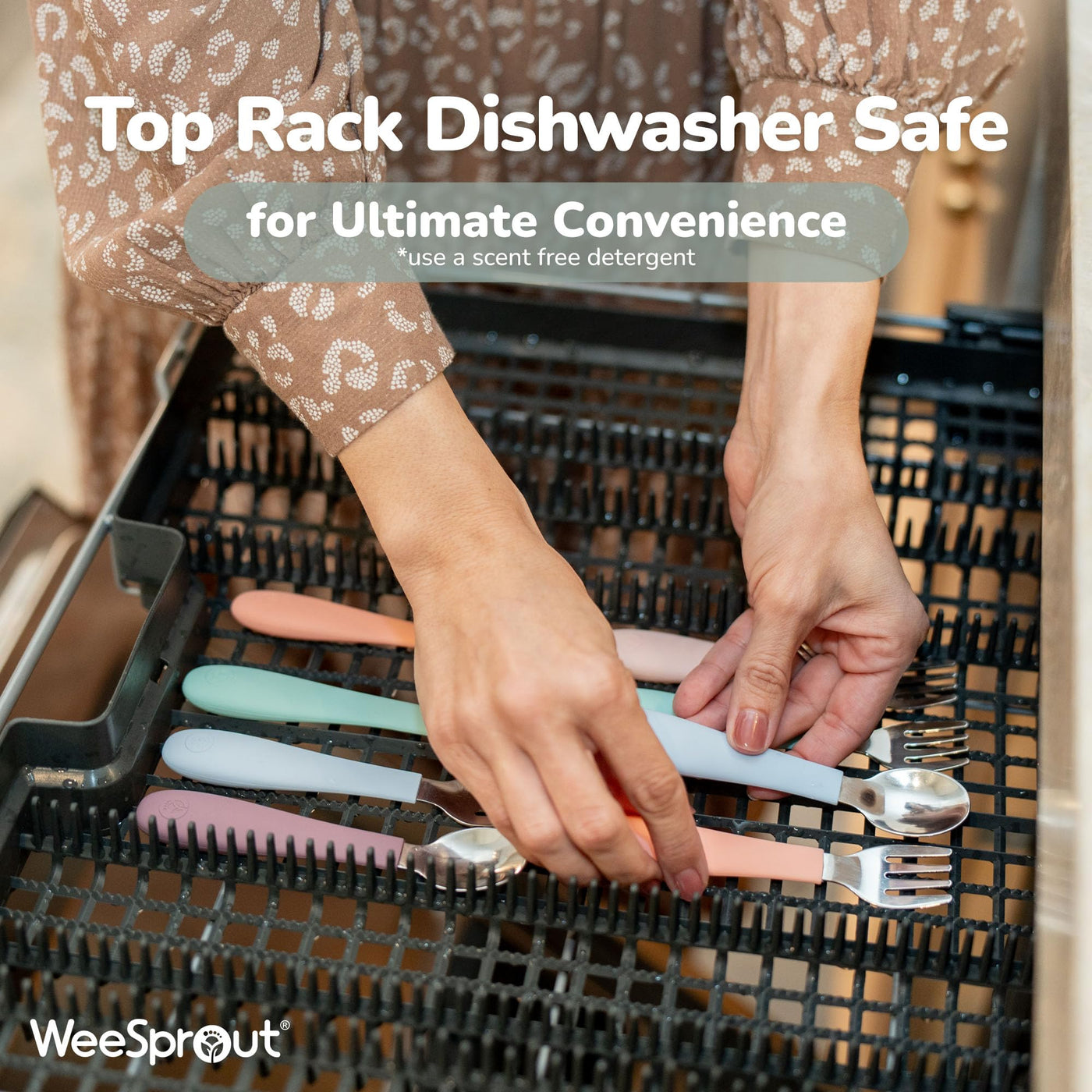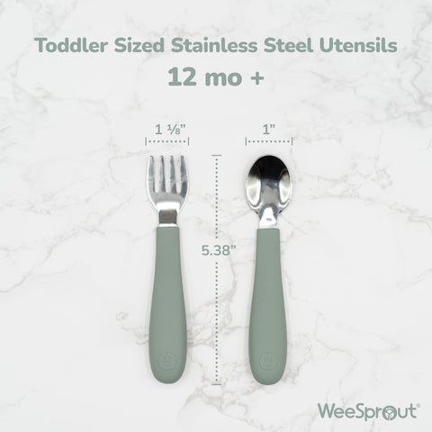WeeSprout Toddler Utensils, 3 Forks & 3 Spoons, 18/8 Stainless Steel & Food Grade Silicone, Thick Easy-Grip Handles, Perfect Length For New Self Feeders, Gentle On Gums & Teeth, Dishwasher Safe Sale