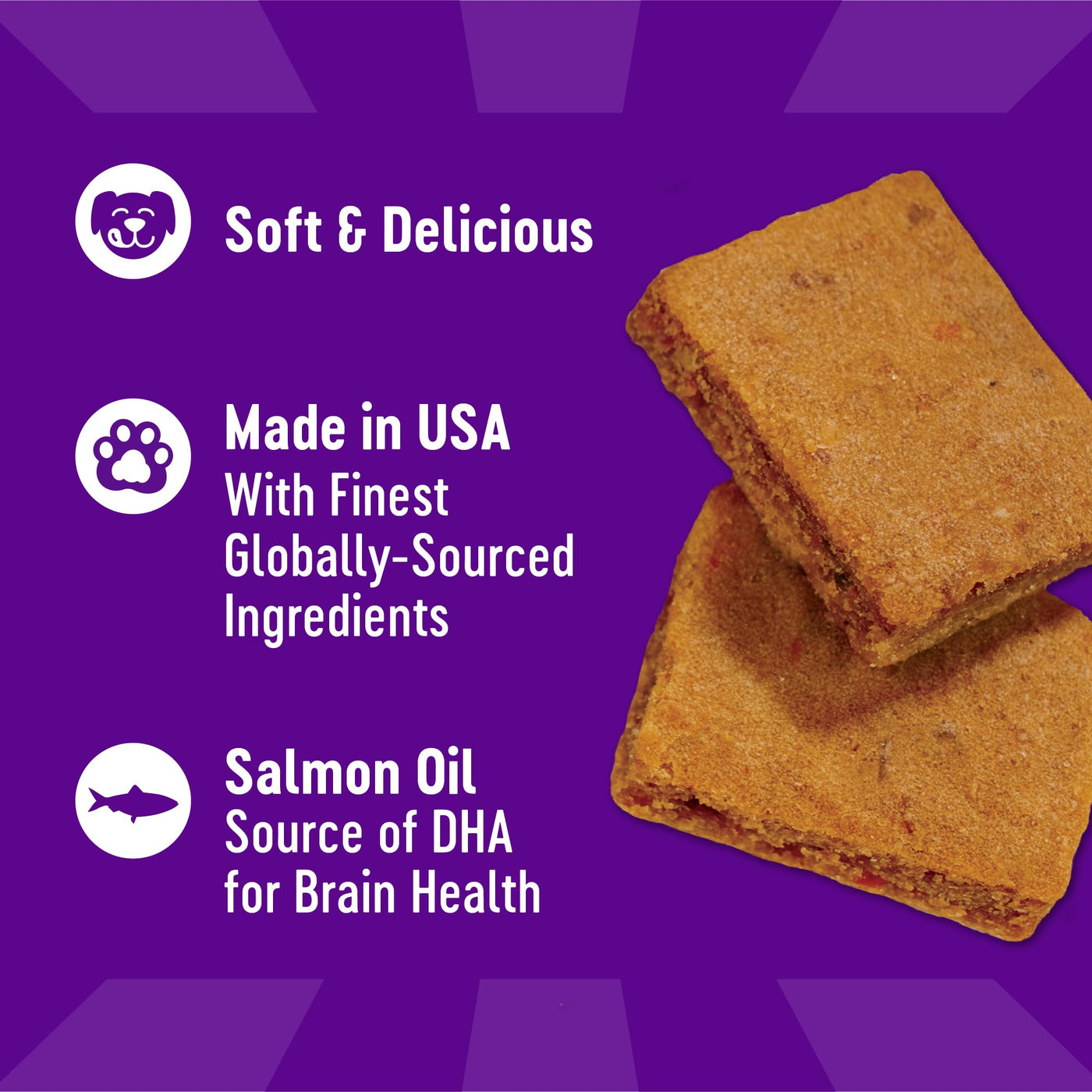 - SUPPORTS BRAIN DEVELOPMENT: Soft dog treats are crafted with salmon, a healthy source of DHA to promote healthy brain development.