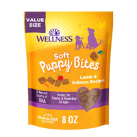 Details: Wellness® healthy Grain Free Soft Puppy Bites Dog Treats are wholesome, healthy, soft, tasty, grain free bite-sized dog treats. Made in USA only and specially formulated for puppies under 1 year!