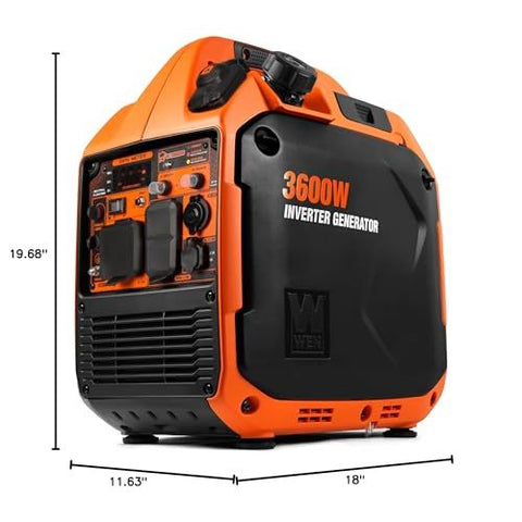 Details: Remember when you had clean and quiet portable power? The WEN 3600-Watt Inverter Generator provides clean energy, free of voltage spikes and drops, without all the noise of a regular generator. Produce up to 3600 surge watts and 2900 rated watts of power on gasoline, or connect a propane tank using the tool-free quick-connector for up to 3500 surge watts and 2600 rated watts of power on LPG. The WEN Watchdog CO Shutdown Sensor helps protect both you and your family by automatically turning off the generator if dangerous levels of carbon monoxide are detected. Our 149cc engine operates at a modest 65 decibels at quarter load. This limits its invasiveness while camping, hunting, tailgating, and restoring backup power. The WEN 3600W Inverter Generator is also equipped with fuel shutoff. This feature turns off the flow of fuel, allowing for the generator to use up the remaining fuel from the carburetor before automatically shutting down. This helps fight the build-up and blockages caused by stagnant fuel inside of the carburetor, minimizing maintenance while prolonging the unit’s lifespan. Designed to mirror a pure sine wave, this generator limits total harmonic distortion to under 0.3 percent at no load and under 1.2 percent at full load, making it safe to run laptops, cellphones, monitors, tablets and other sensitive electronics. The lightweight 49-pound design makes for easy portability while the ultra-efficient 1.5-gallon tank provides up to 5 hours of half-load run time (or 14 hours half-load run time on a 20-pound LPG tank). The fully-packed panel comes equipped with two three-prong 120V NEMA 5-20R receptacles, one 12V DC receptacle, one 120V TT-30R RV receptacle, and two 5V USB ports. Maximize fuel economy by engaging the eco-mode switch. This allows the generator's engine to automatically adjust its fuel consumption as items are plugged into and unplugged from the panel, preventing the unnecessary usage of gasoline. Need more energy? Easily link up any two WEN inverter generators using a WEN Parallel Connection Kit (sold separately) in order to share wattage amongst multiple units. Low-oil and low-fuel automatic shutdown combine with the built-in overload protection and indicator lights to safeguard both your generator and your electronics from damage. And because this is a WEN Product, your inverter generator comes backed by a 3-year limited warranty, a nationwide network of skilled service technicians and a friendly customer helpline. Remember when your generator powered your electronics safely and quietly? Remember WEN.