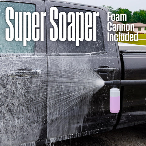 - Comes Ready to Clean: 20′ foot abrasion resistant super-flex hose with lightweight high pressure spray gun, wand and 2 quick connect nozzles (15°, 25°)