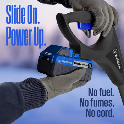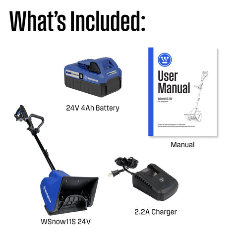 Details: The Westinghouse WSnow11S 24V cordless electric snow shovel is designed to have the power of walk-behind machines, with the ease and freedom of cordless electric power. This gas-free, grab-and-go, battery powered snow shovel clears an impressive path 11-inches wide and 7-inches deep in every pass, moving a cool 75 pounds of snow per minute, throwing it up to 20 feet away. With a strong and reliable low-maintenance push-button-start 400 Watt electric motor, you can easily remove snow anytime without worrying about refueling with gas or dealing with a long electric cord. Comes with a 24 Volt 4Ah lithium-ion battery and 2.2A fast charger that fully charges in 1.8 hours for a working time of 25 minutes for 2 inches of snow. That’s a lot of power packed into a small machine, so it’s lighter and more maneuverable than heavier clunky walk-behind snow throwers, making the WSnow11S 24V a perfect choice for snow removal for driveways, walkways, sidewalks, porches, steps and decks. It's easy to carry and small enough to store by the door for easy anytime use. Ergonomic adjustable handle for use by all. So make traditional back-breaking snow shovels a thing of the past. And think twice about a clunky walk behind machine: now you can move snow easily with the Westinghouse WSnow11S 24V cordless electric snow shovel. Just clear your path and enjoy the snow.