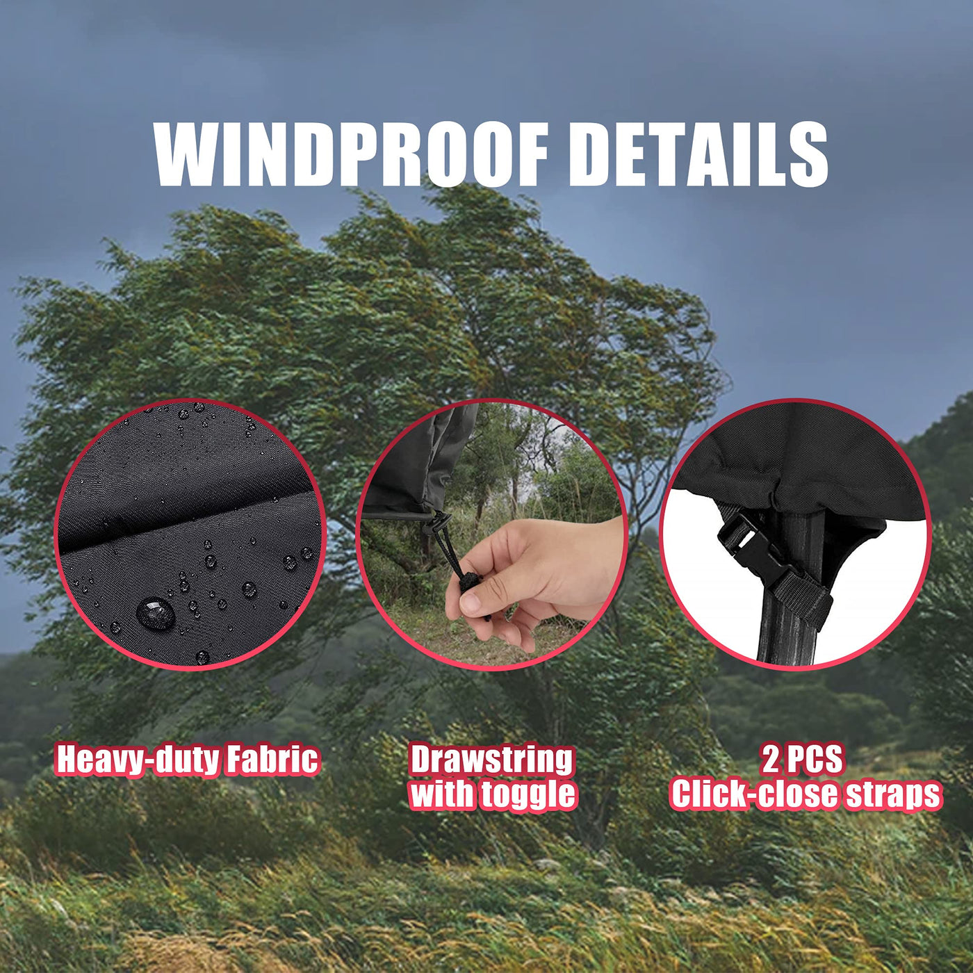 - 【Windproof】2 Solid click-close straps around legs and Snug-fitting drawstring at them with adjustable toggle keep your cover secure in the windiest conditions.