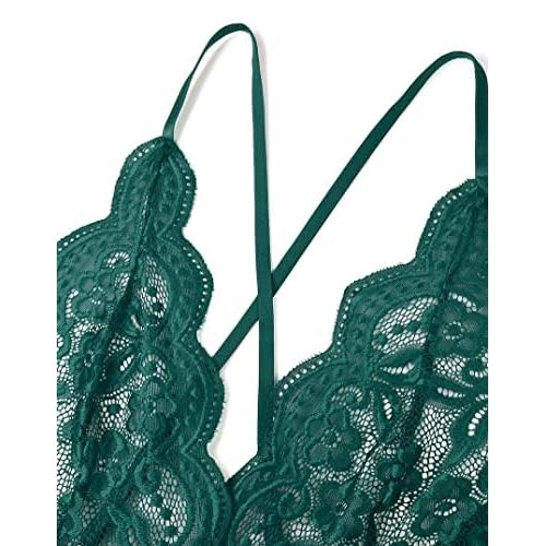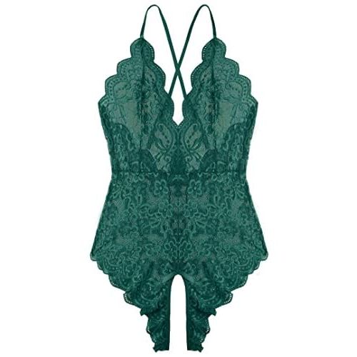 - Features:Soft floral lace bodysuit with a delicated scalloped on cup eadge,deep V-neck and criss cross back adjustable strap design to show your beautiful lines and draw your lover's attention on a special night.