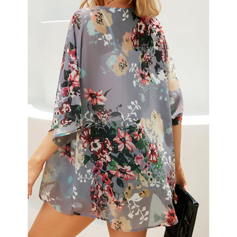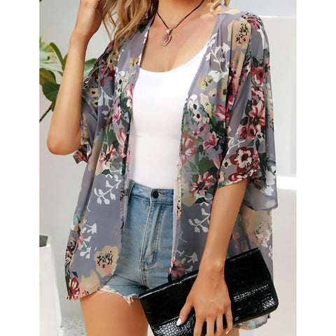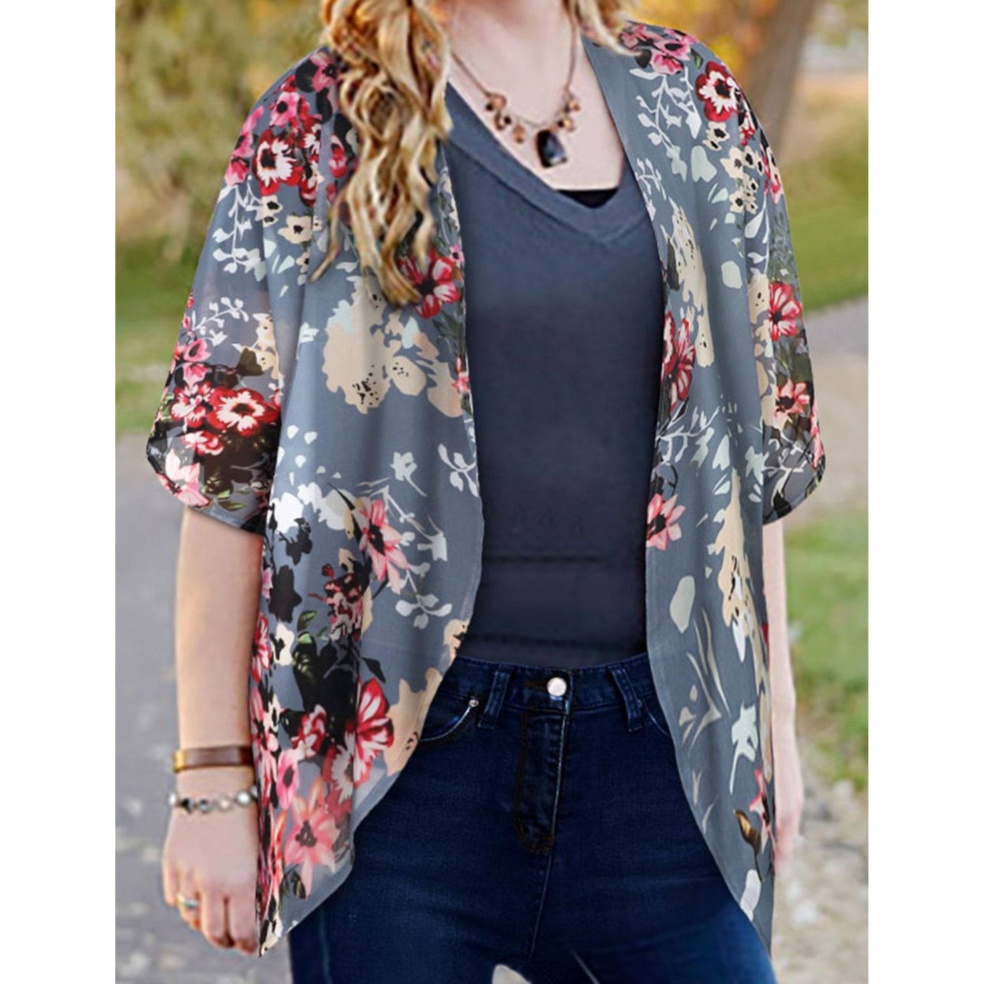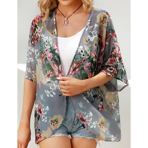 - Floral Cardigan,Casual summer plus size tops,Kimono beach cover ups,Chiffon shirts,Open Front,Loose Puff Sleeve outwear.