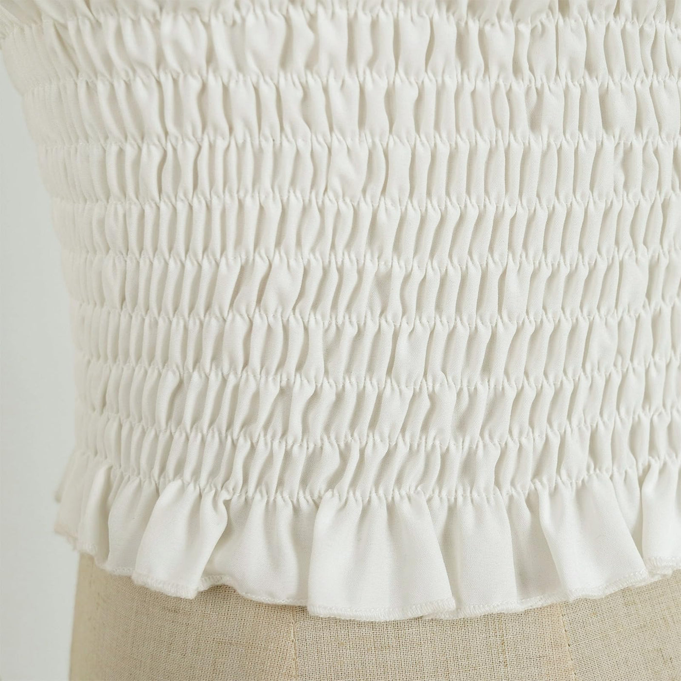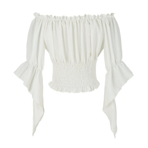 - DESIGN:Off the shoulder design can be worn on or take off, Long trumpet sleeves, ruffle neck and cuffs, Elastic high smocked waist, soft and comfortable fabric.