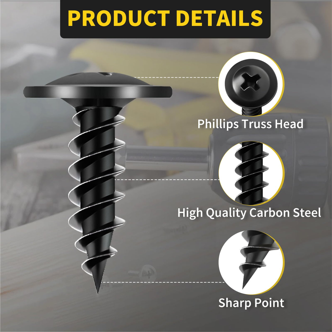 Wood Screws 1/2 Inch, 160 PCS FIXLINK Premium Phillips Truss Head Black Wood Screws, Self Tapping Electrophoresis Modified Fast Truss Head Wood Screw Used in Indoor Furniture, Woodworking (#8 x 1/2") Sale