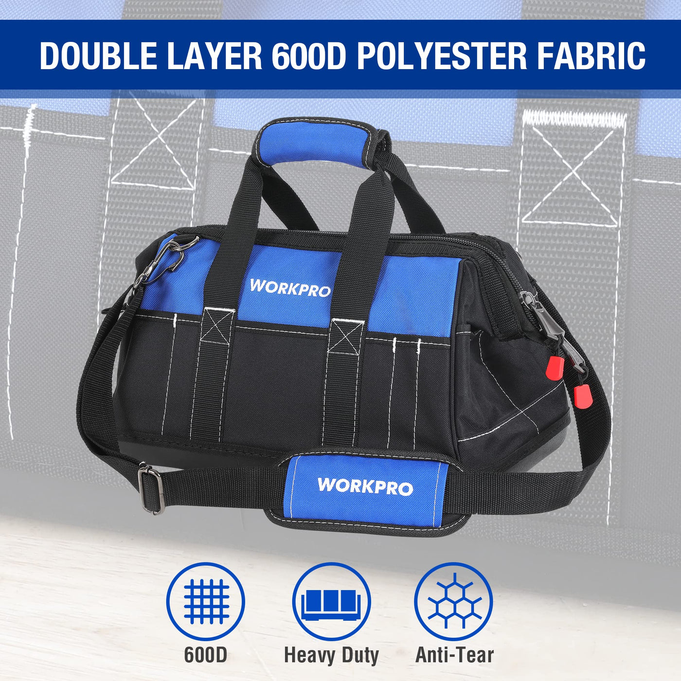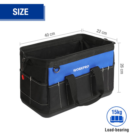 WORKPRO 16-inch Wide Mouth Tool Bag with Water Proof Molded Base