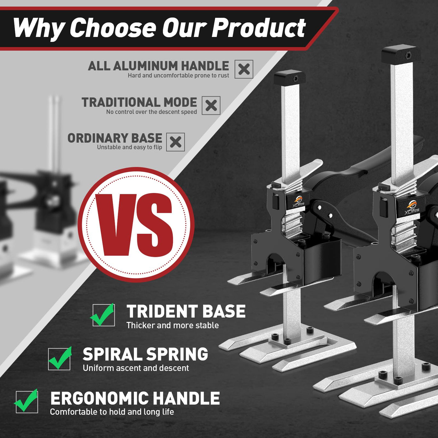 - ALL STEEL SOLID BASE —— Load-Bearing And Durable: Innovative lifting tool, thickened double clip solid steel bottom plate, stable center of gravity, Two are used at the same time, bearing 450 pounds, and 6.69 inches of lifting capacity through handle adjustment spring. Selected high strength spring, longer service life