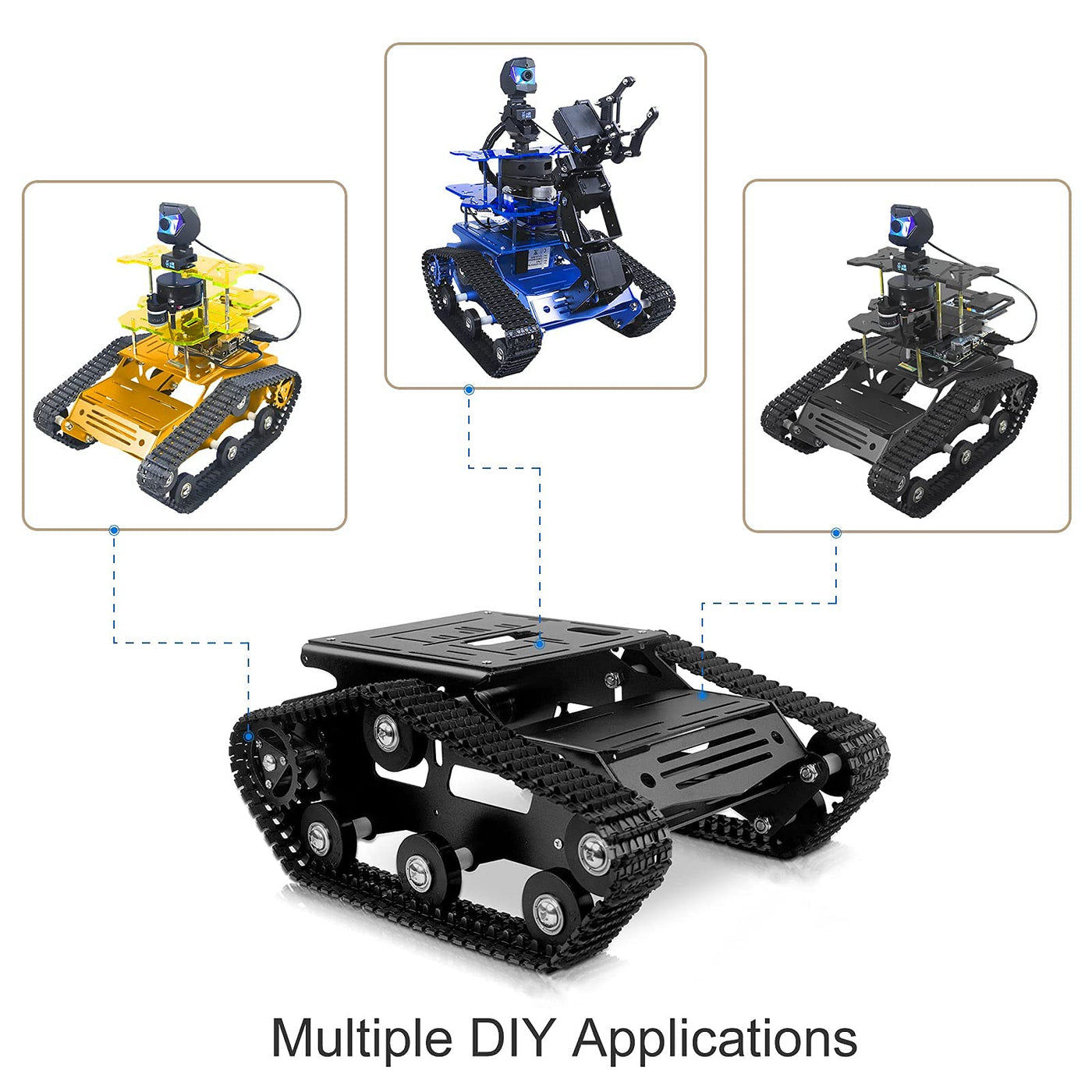 XiaoR Geek Smart Robot Car Chassis Kit Aluminum Alloy Big Tank Chassis with 2WD Motors for Arduino/Raspberry Pi DIY RC Shock Absorbing Tracked Robot Car Toys - Learning Kit (Black) Sale