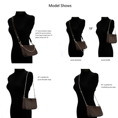 - 18'' long including the 2 clasps. Nice for accessories or purse handle
