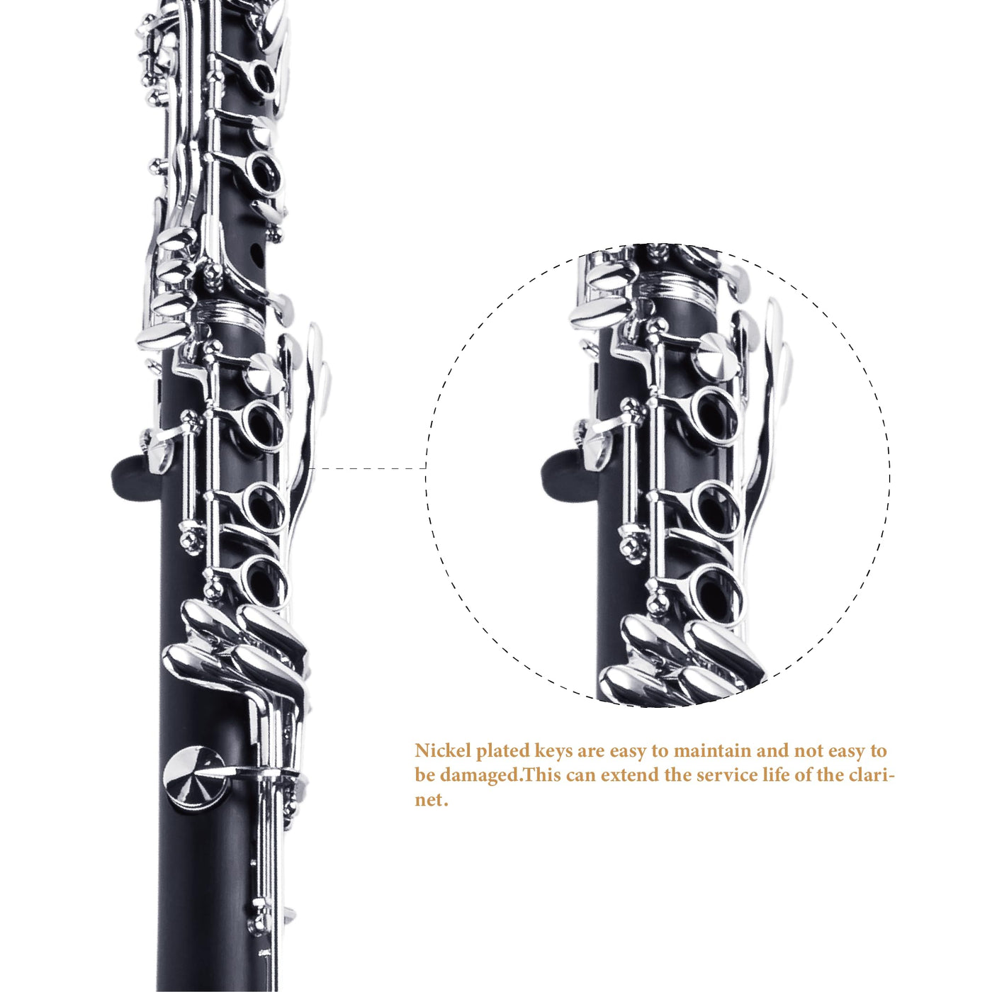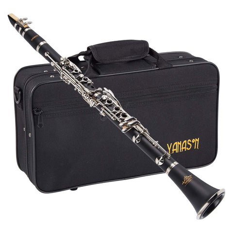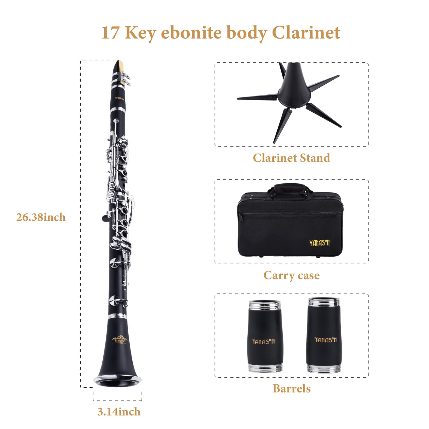 YANASON Bb clarinet for beginners, Bb nickel-plated 17-keys clarinet, suitable for students, professionals, school bands with Hard Foam Case,Barrels*2,Pads*8,Stand, Cleaning Kit,Gloves,Strap,Reeds*8 Sale