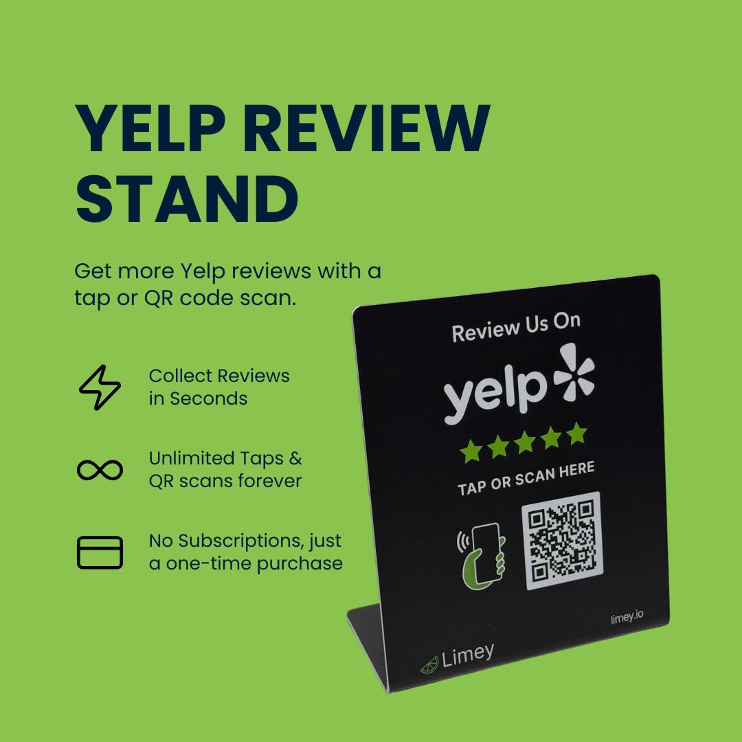 Details: Boost your Yelp reviews with ease using our Limey Yelp stands. Simple, contactless, and built for instant feedback—get more reviews on-site, hassle-free. Customers can instantly engage with just a tap via NFC or a quick scan of the QR code using their phone’s camera—it’s that simple.